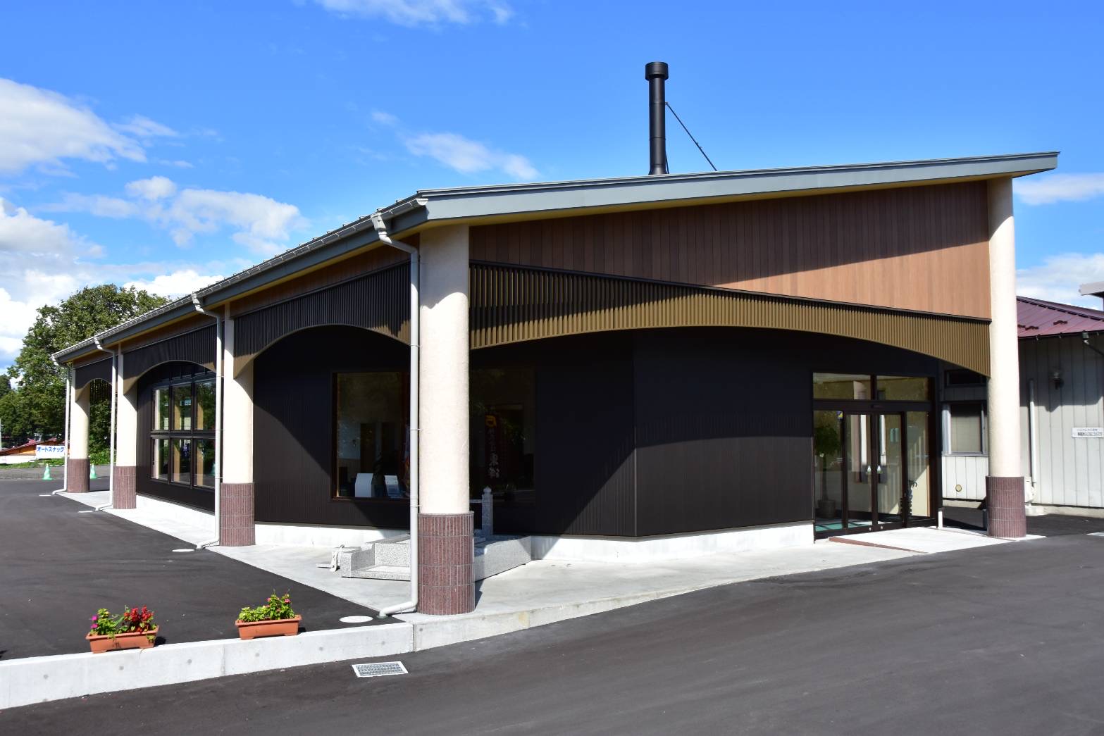 栗原市築館にある葬儀会館です左側が店舗兼事務所、右側が葬儀会館になります80人規模の会館葬から少人数での家族葬、両方のプランに対応可能です