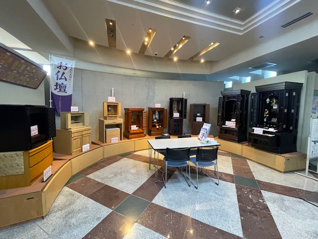 弊社、3つの葬儀会館の中で最大規模を誇る会館になります火葬場への移動距離が非常に短く、ご遺族・ご参列の方々の負担を最小限に抑えた進行が可能です展示場にはお仏壇、お線香、供養物等、仏事に欠かせない品々を取り揃えております