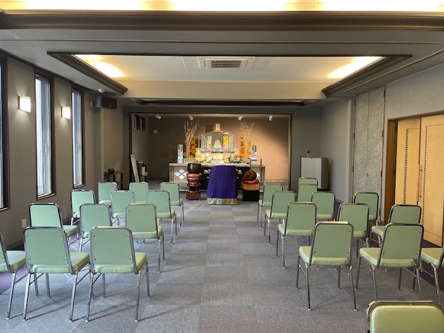 本館右隣にある家族葬専用会館です洋風祭壇を使用し、現代的な感性が反映された静かで温かみのある空間を演出し、穏やかお見送りを可能にします