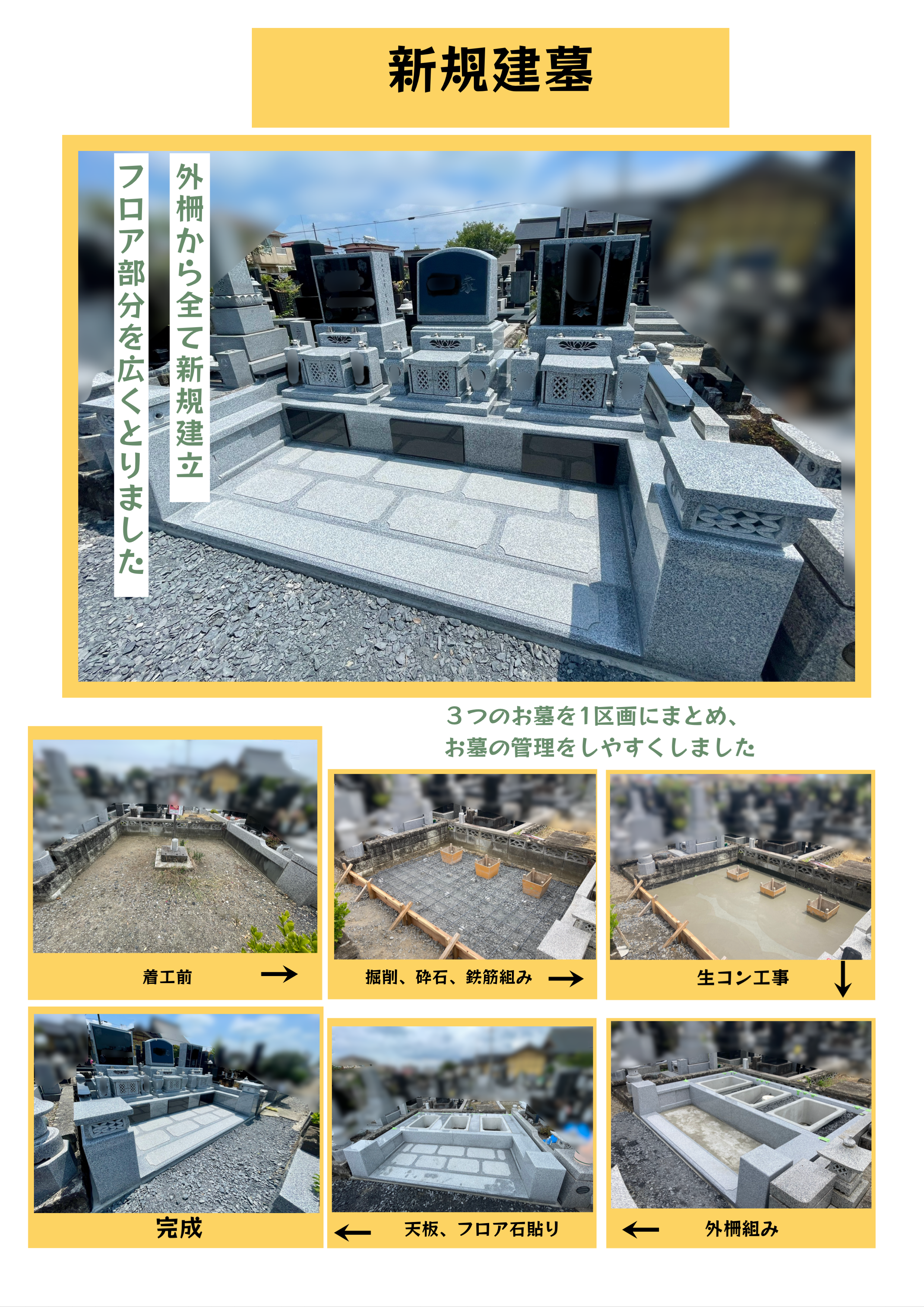 展示場紹介/新規建墓/リフォーム/修理/墓じまい/クリーニング/現場彫刻・納骨/永代供養/その他石製品